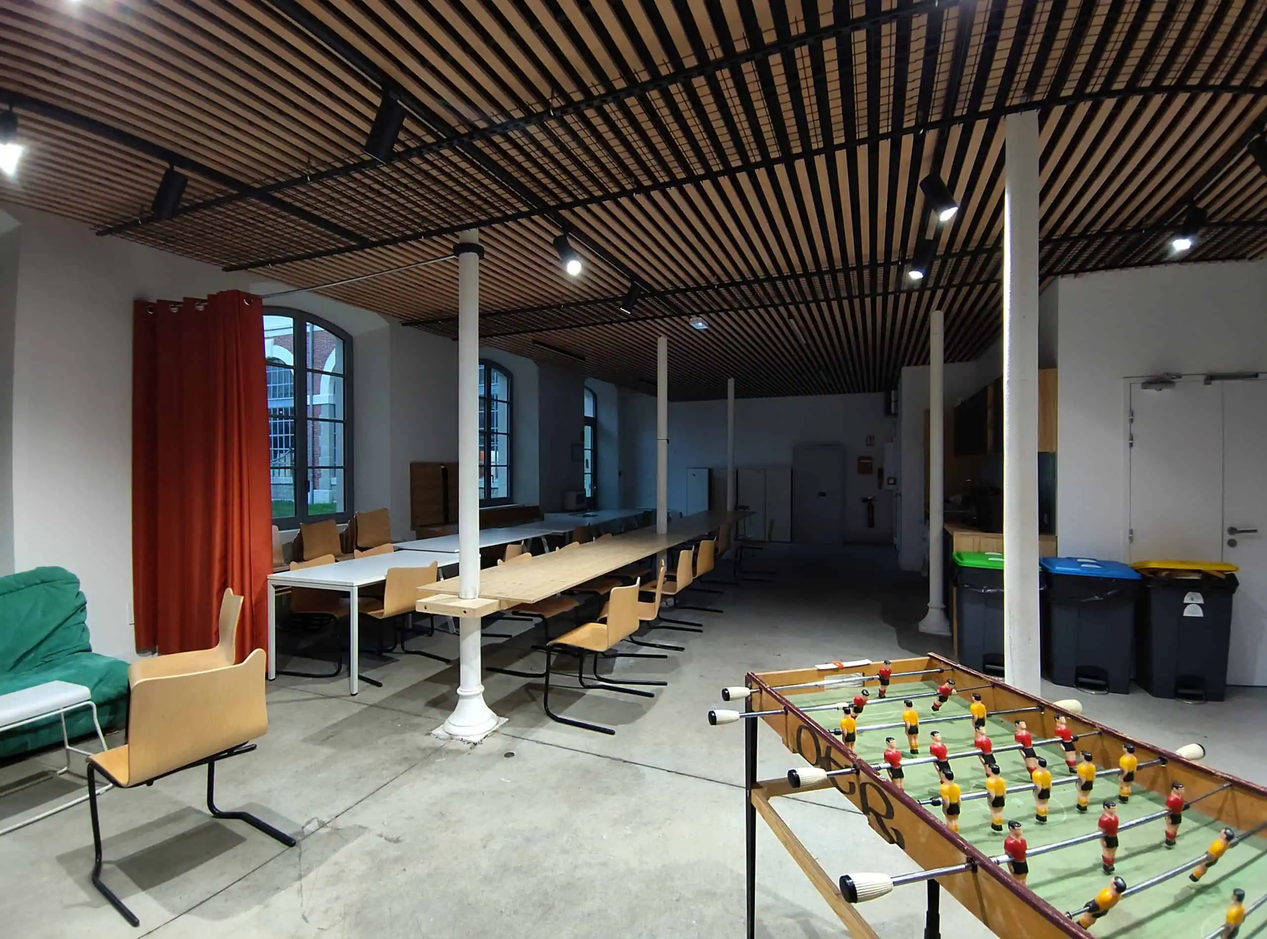 Le projet co-conçu propose notamment la création de mobilier amovible par les étudiants eux-mêmes, d’un plafond bois acoustique, ainsi que des prairies et terrasses pouvant facilement s’adapter aux différents usages de repos, expérimentations, évènements de la riche vie étudiante de l’école.
